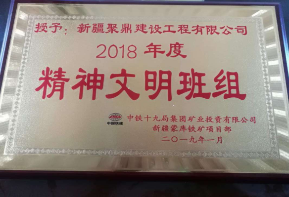 1月13日,中鐵十九局集團投資有限公司新疆蒙庫鐵礦項目部召開2018年度精神文明工作會議及年度表彰大會,我單位為精神文明活動深入發展做出積極貢獻受到表彰。我單位被授予2018年度精神文明班組稱號。